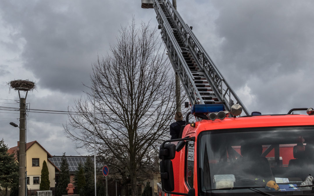 Dank der Unterstützung der Vetschauer Feuerwehr, die mit einem Leiterwagen angerückt ist, konnte ein „Frühjahrsputz“ an der Kamera durchgeführt werden.